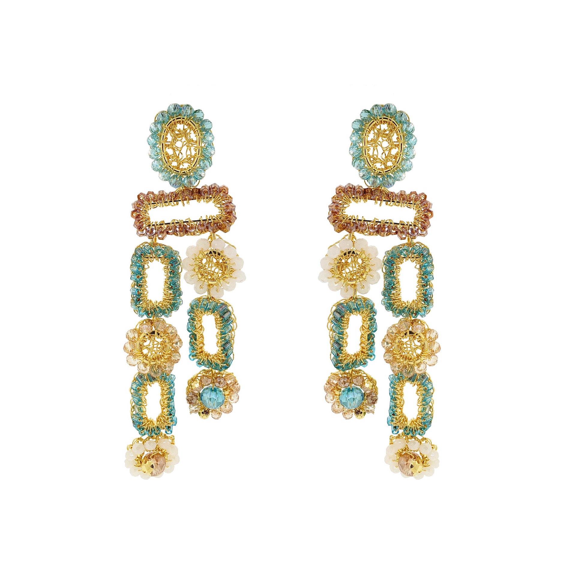 Brincos tecidos com a técnica do crochê por artesãs brasileiras altamente qualificadas. Confeccionado com fio de cobre banhado em ouro 18k. É uma joia leve e confortável. Fabricado com materiais hipoalergênicos e sem níquel. Esse brinco é tecido individualmente e carrega a impressão digital da artesã que o teceu, tornando sua joia única e deslumbrantes que durarão por toda a vida.