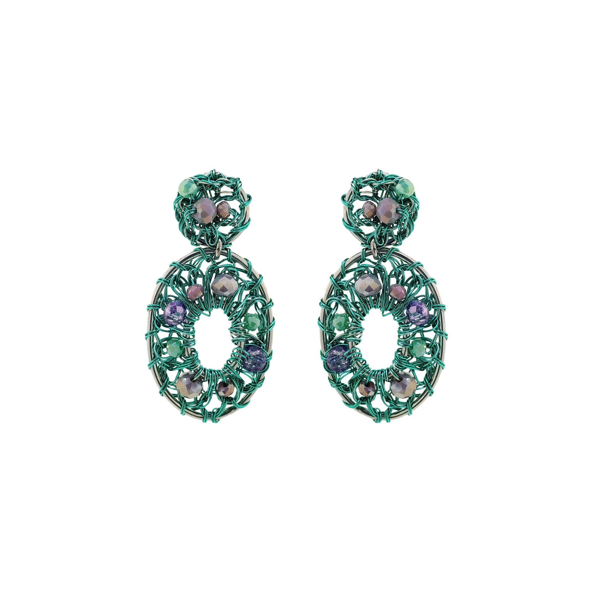 Brinco de Crochê Moira Drop Aurora Lilás e Verde