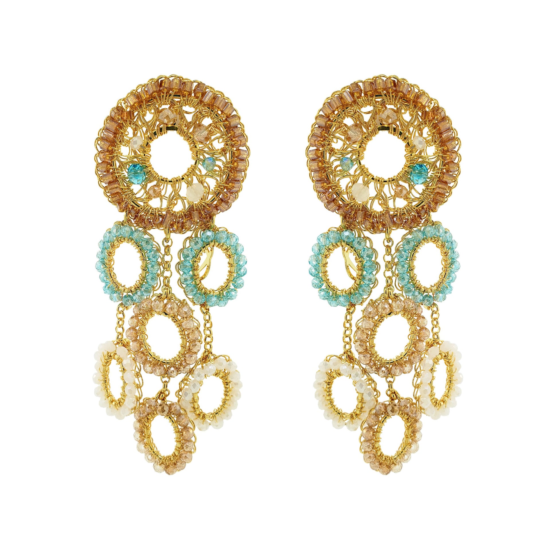 Brincos tecidos com a técnica do crochê por artesãs brasileiras altamente qualificadas. Confeccionado com fio de cobre banhado em ouro 18 quilates. É uma joia leve e confortável. Fabricado com materiais hipoalergênicos e sem níquel. Esse brinco é tecido individualmente e carrega a impressão digital da artesã que o teceu, tornando sua joia única e deslumbrantes que durarão por toda a vida.