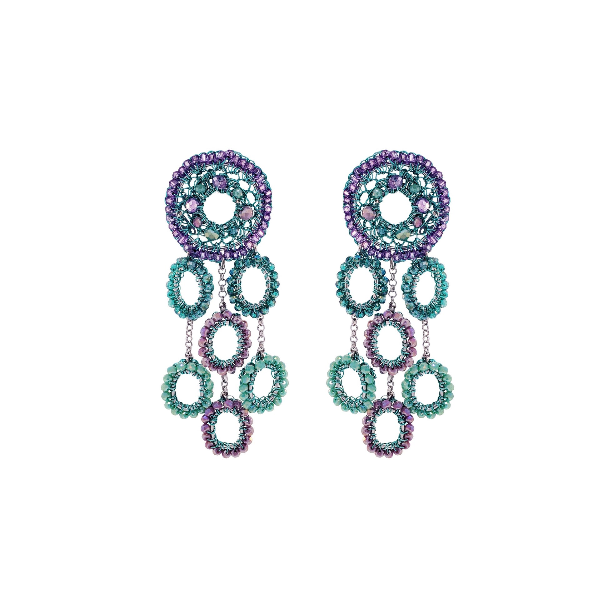 Brinco de Crochê Moira Chandelier Aurora Lilás e Verde