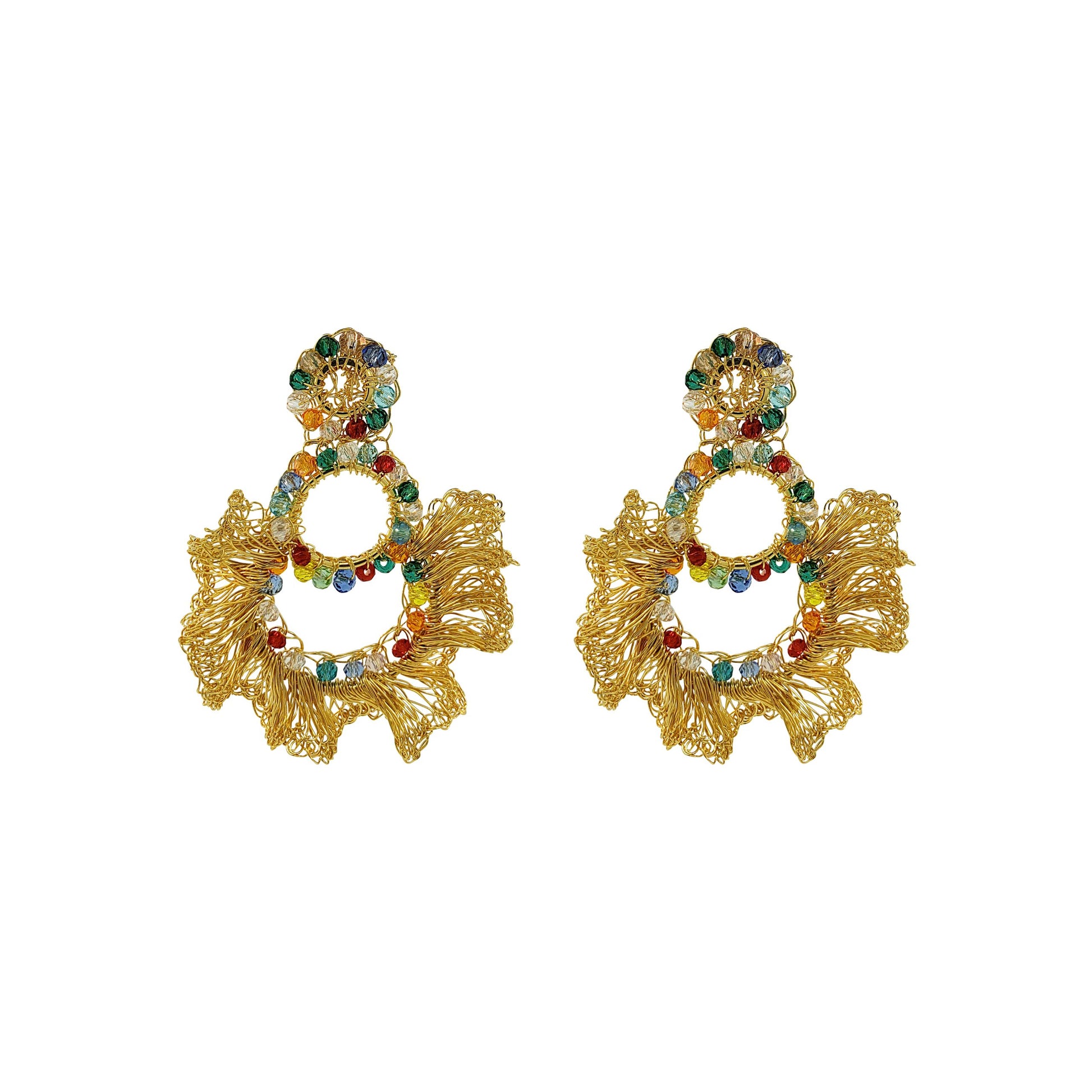 Brincos tecidos com a técnica do crochê por artesãs brasileiras altamente qualificadas. É uma joia leve e confortável. Fabricado com materiais hipoalergênicos e sem níquel. Esse brinco é tecido individualmente e carrega a impressão digital da artesã que o teceu, tornando sua joia única e deslumbrantes que durarão por toda a vida. Brinco de Crochê Gaia Chronos Legacy Multicolor, possui: