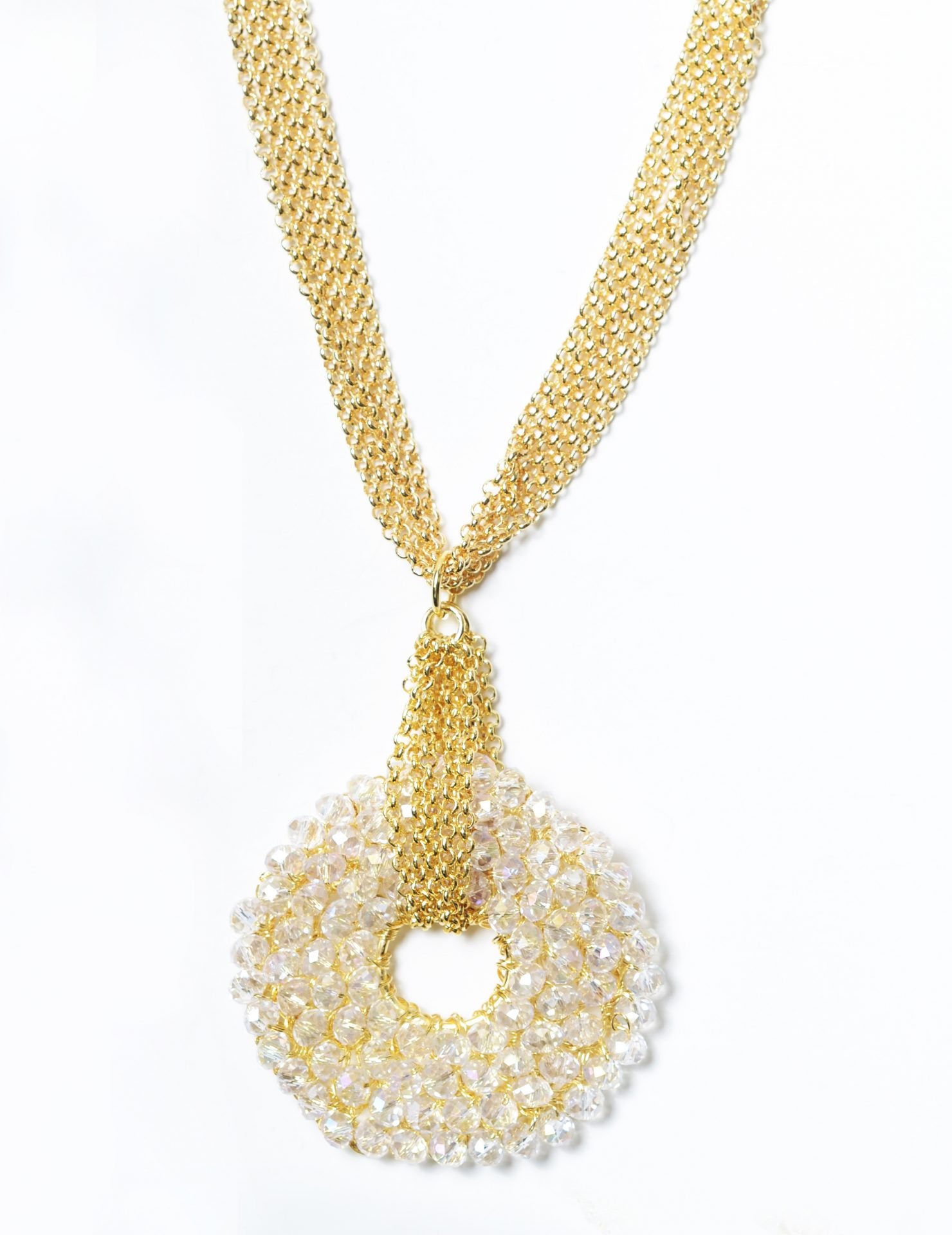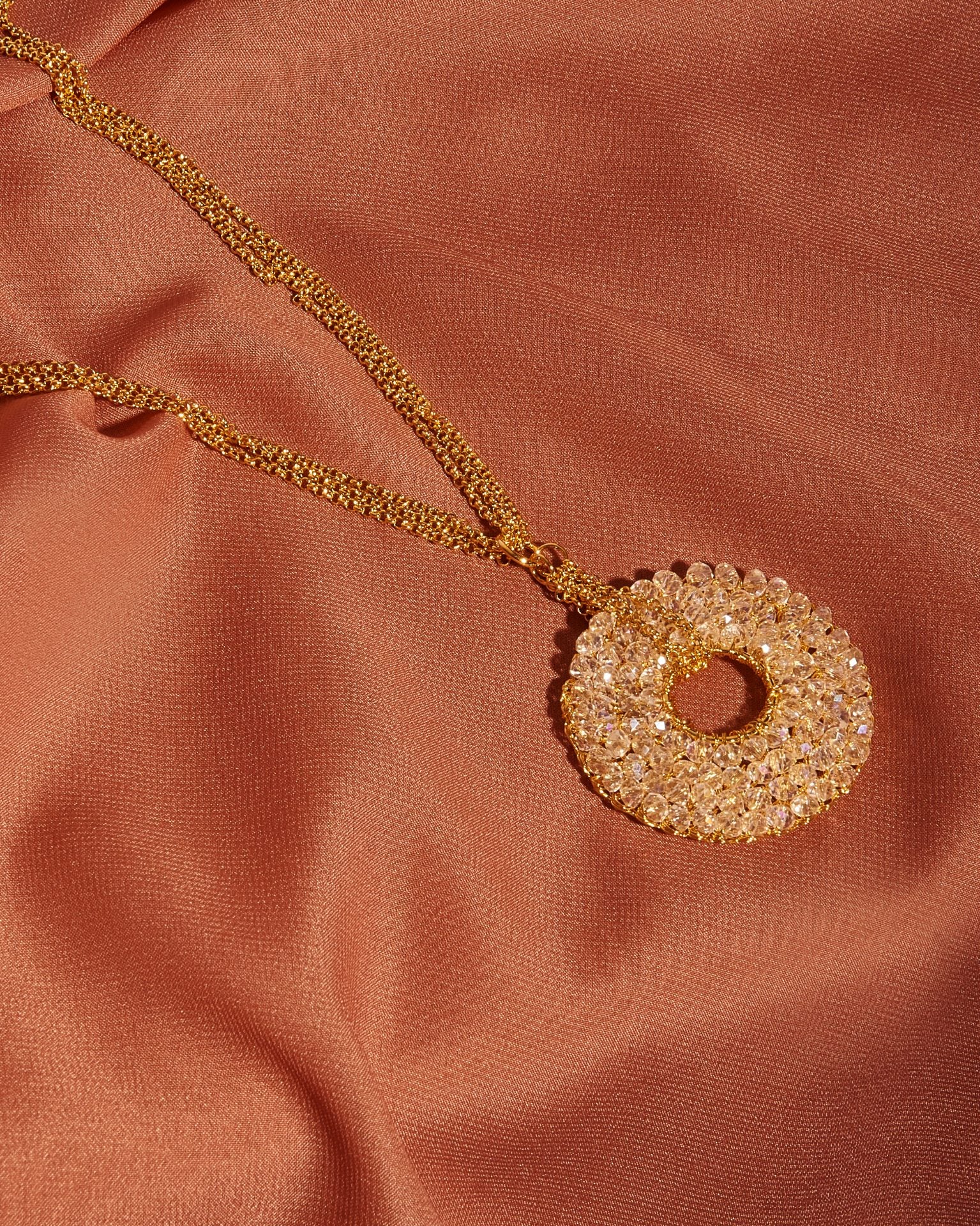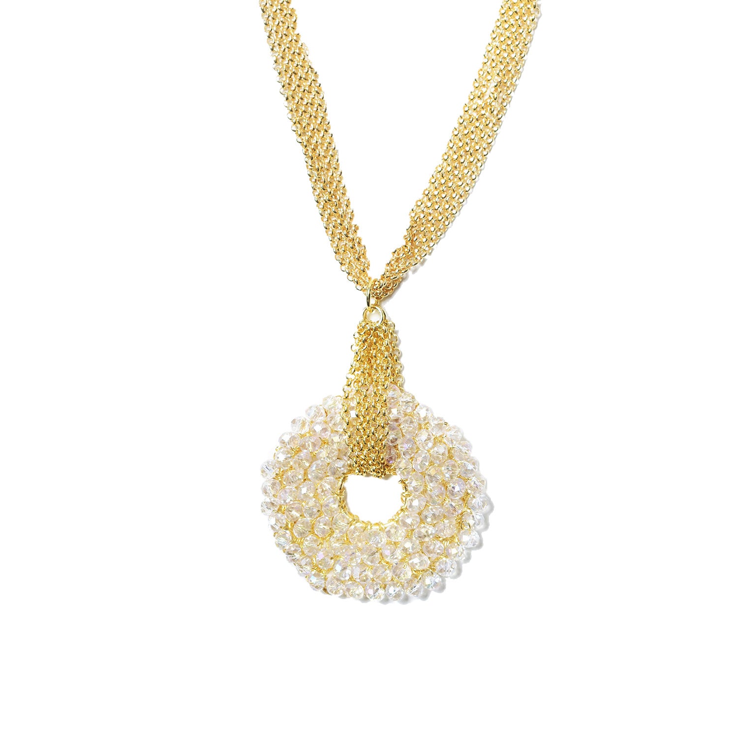 Colar tecido com a técnica do crochê por artesãs brasileiras altamente qualificadas. Confeccionado com fio de cobre banhado a ouro 18 quilates. É uma joia leve e confortável. Fabricado com materiais hipoalergênicos e sem níquel. Esse colar é tecido individualmente e carrega a impressão digital da artesã que o teceu, tornando sua joia única e deslumbrantes que durarão por toda a vida.