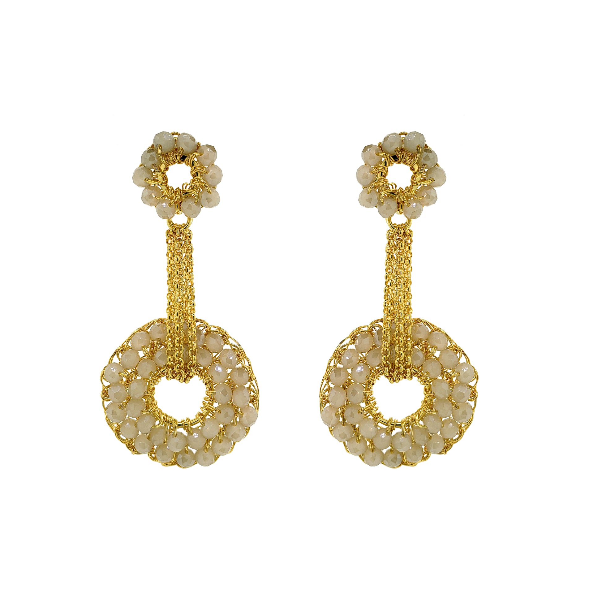 Brincos tecidos com a técnica do crochê por artesãs brasileiras altamente qualificadas. Confeccionado com fio de cobre banhado em ouro 18 quilates. É uma joia leve e confortável. Fabricado com materiais hipoalergênicos e sem níquel. Esse brinco é tecido individualmente e carrega a impressão digital da artesã que o teceu, tornando sua joia única e deslumbrantes que durarão por toda a vida.