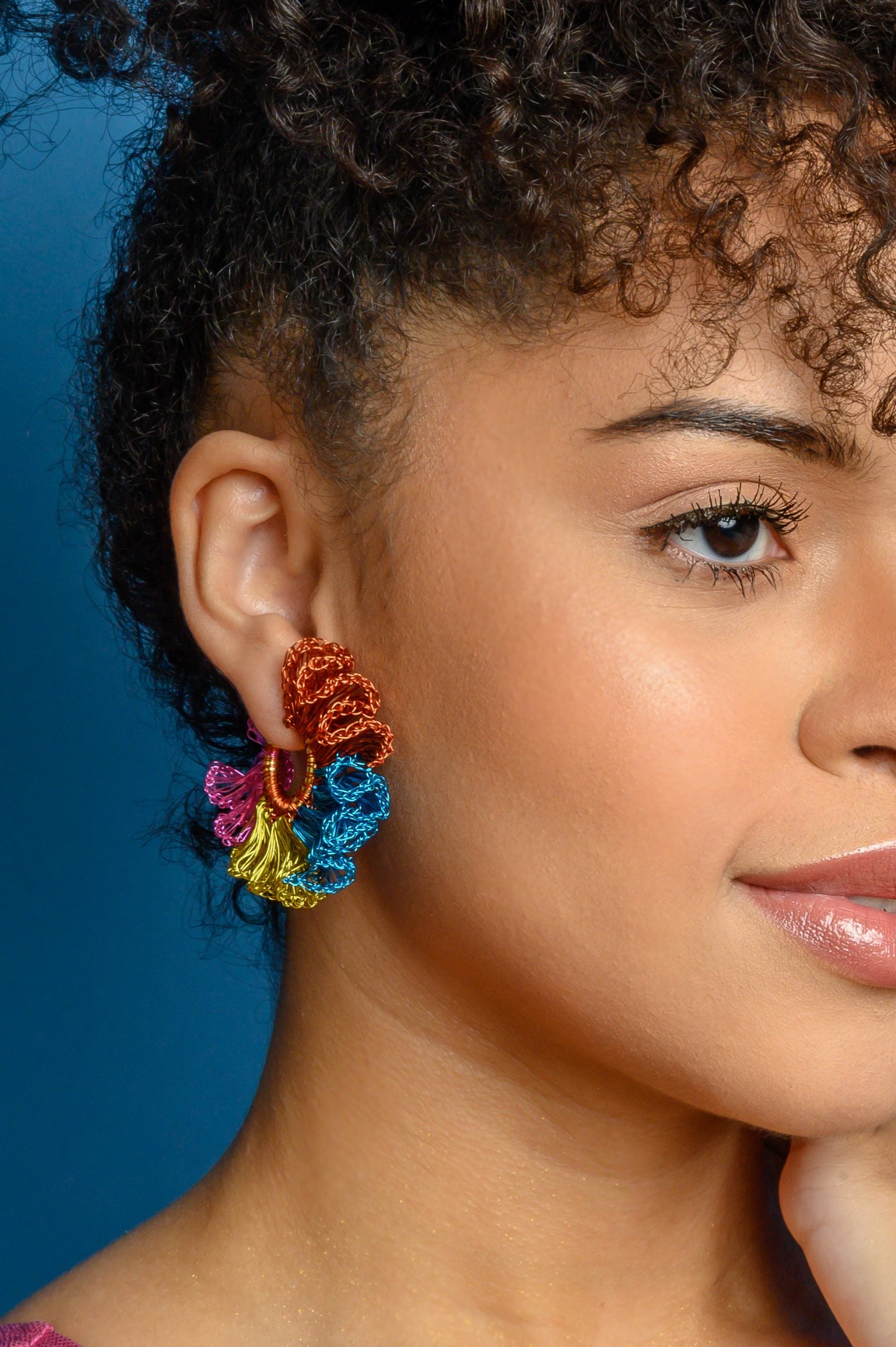 Brincos tecidos com a técnica do crochê por artesãs brasileiras altamente qualificadas. Confeccionado com fio de cobre esmaltado importado. É uma joia leve e confortável. Fabricado com materiais hipoalergênicos e sem níquel. Esse brinco é tecido individualmente e carrega a impressão digital da artesã que o teceu, tornando sua joia única e deslumbrantes que durarão por toda a vida.