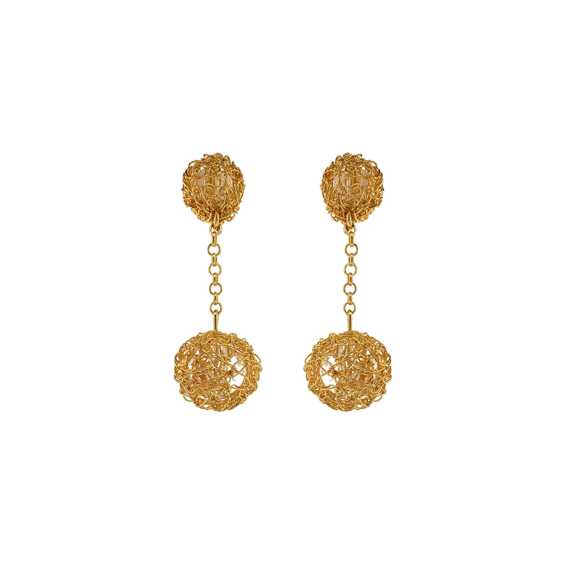 Brincos tecidos com a técnica do crochê por artesãs brasileiras altamente qualificadas. Confeccionado com fio de cobre banhado em Ouro 18k. É uma joia leve e confortável. Fabricado com materiais hipoalergênicos e sem níquel. Esse brinco é tecido individualmente e carrega a impressão digital da artesã que o teceu, tornando sua joia única e deslumbrantes que durarão por toda a vida.