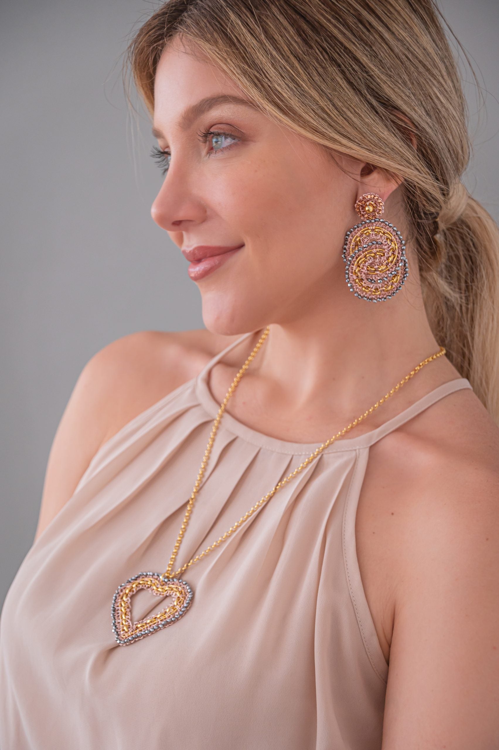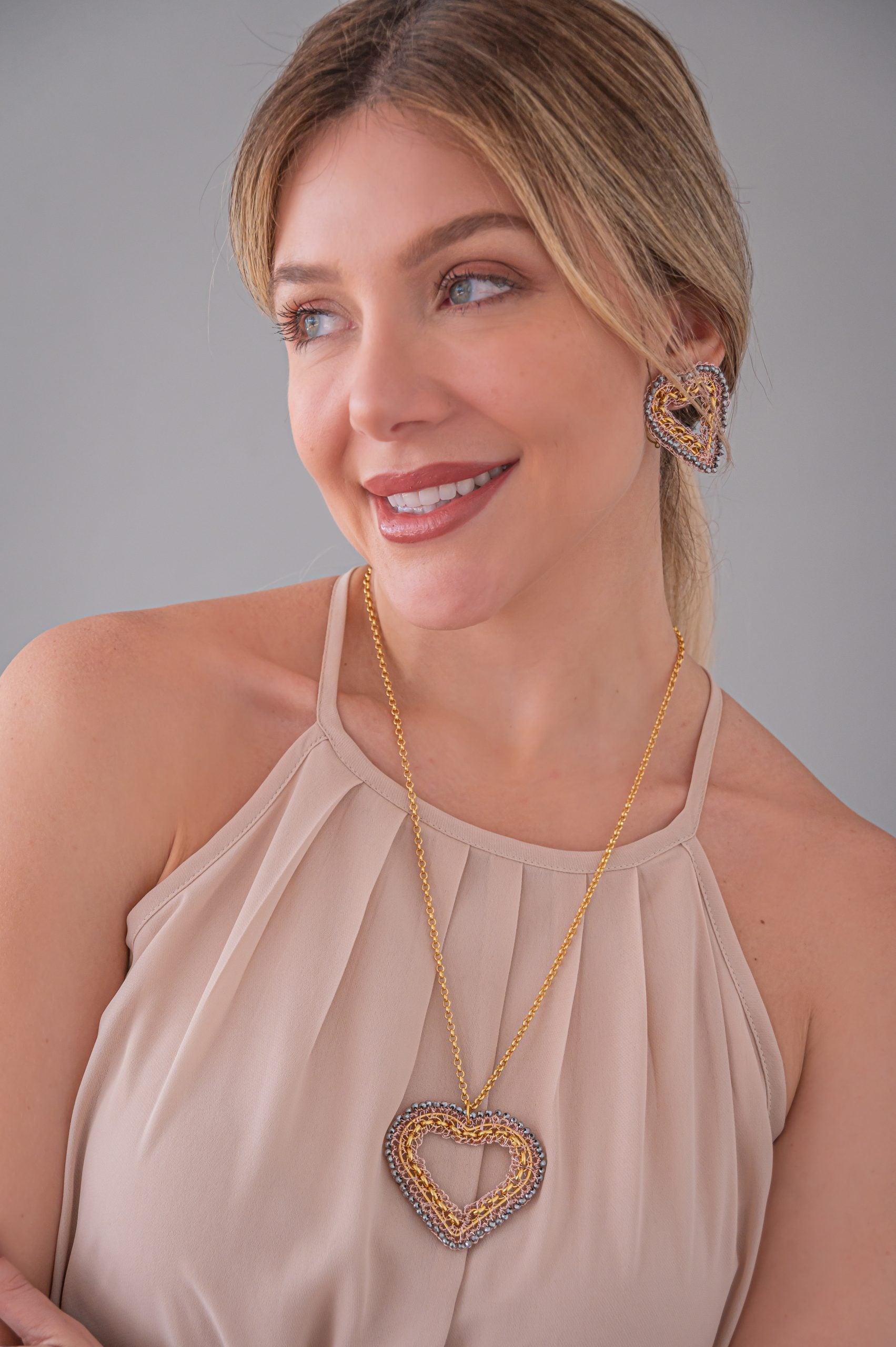 Colar de Crochê Coração Correntes do Amor Entrelaçados Trio Gold