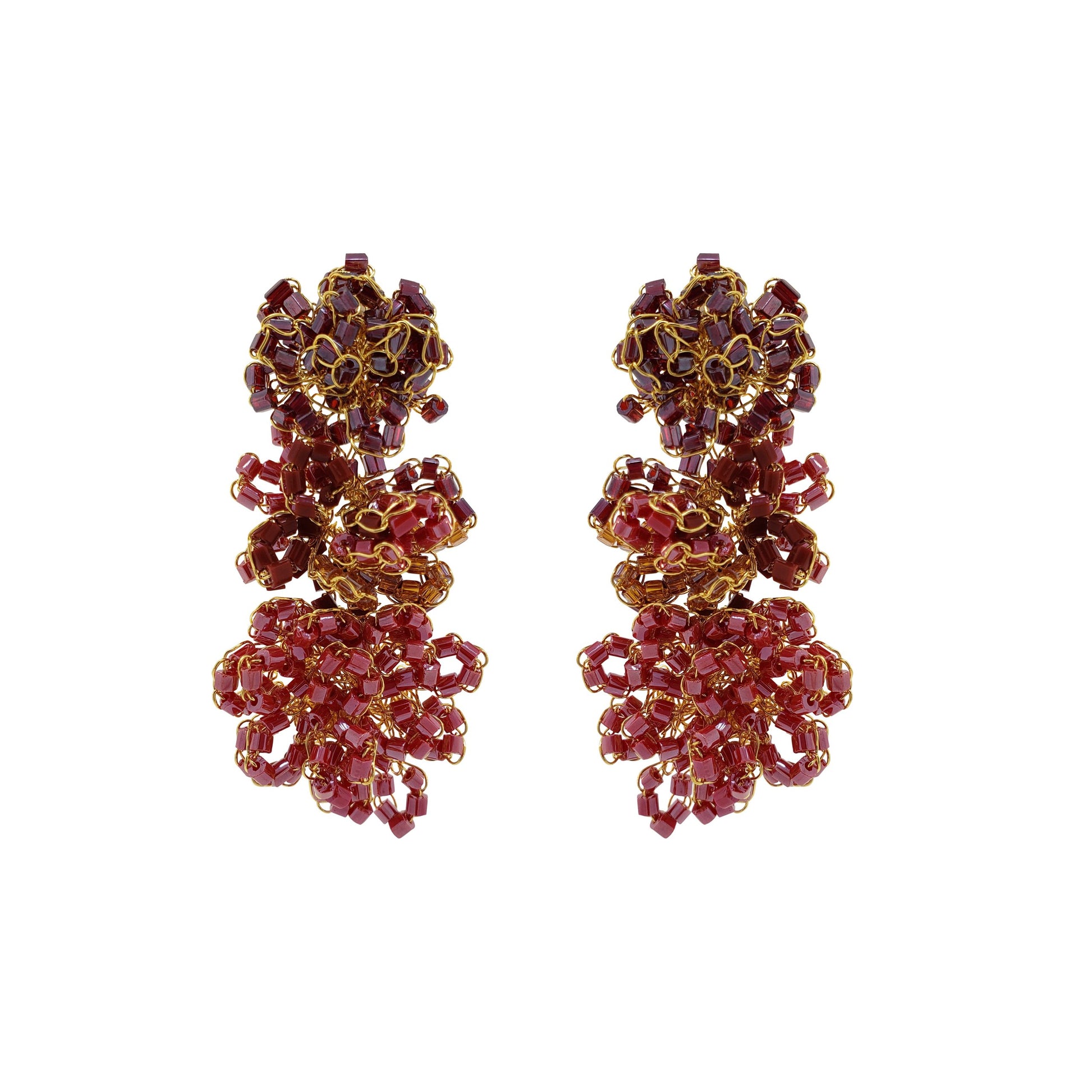 Brinco de Crochê Tri Flore Vermelho Mystic Forest