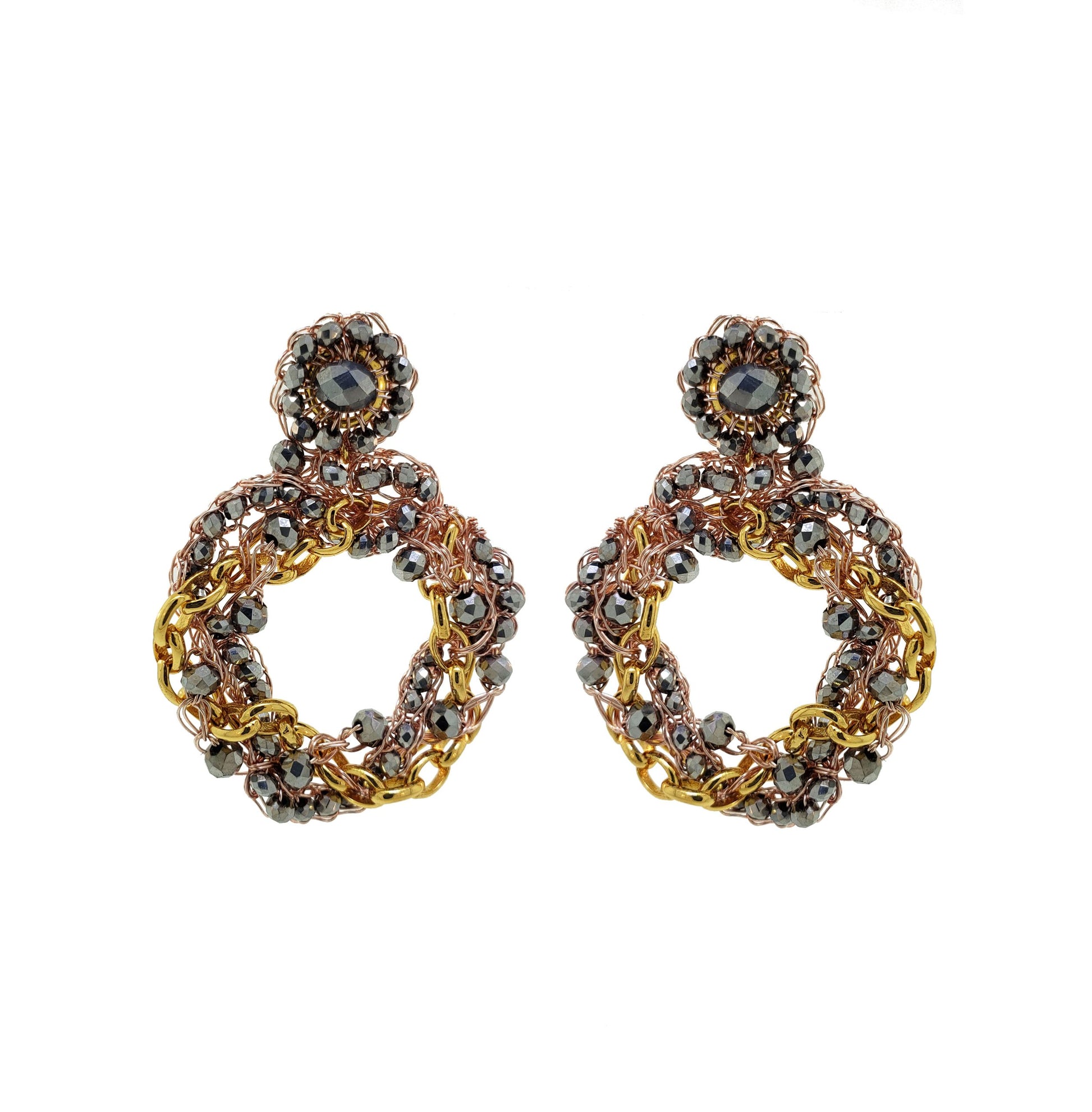 Brinco de Crochê Argola Correntes do Amor Entrelaçados Pérola
