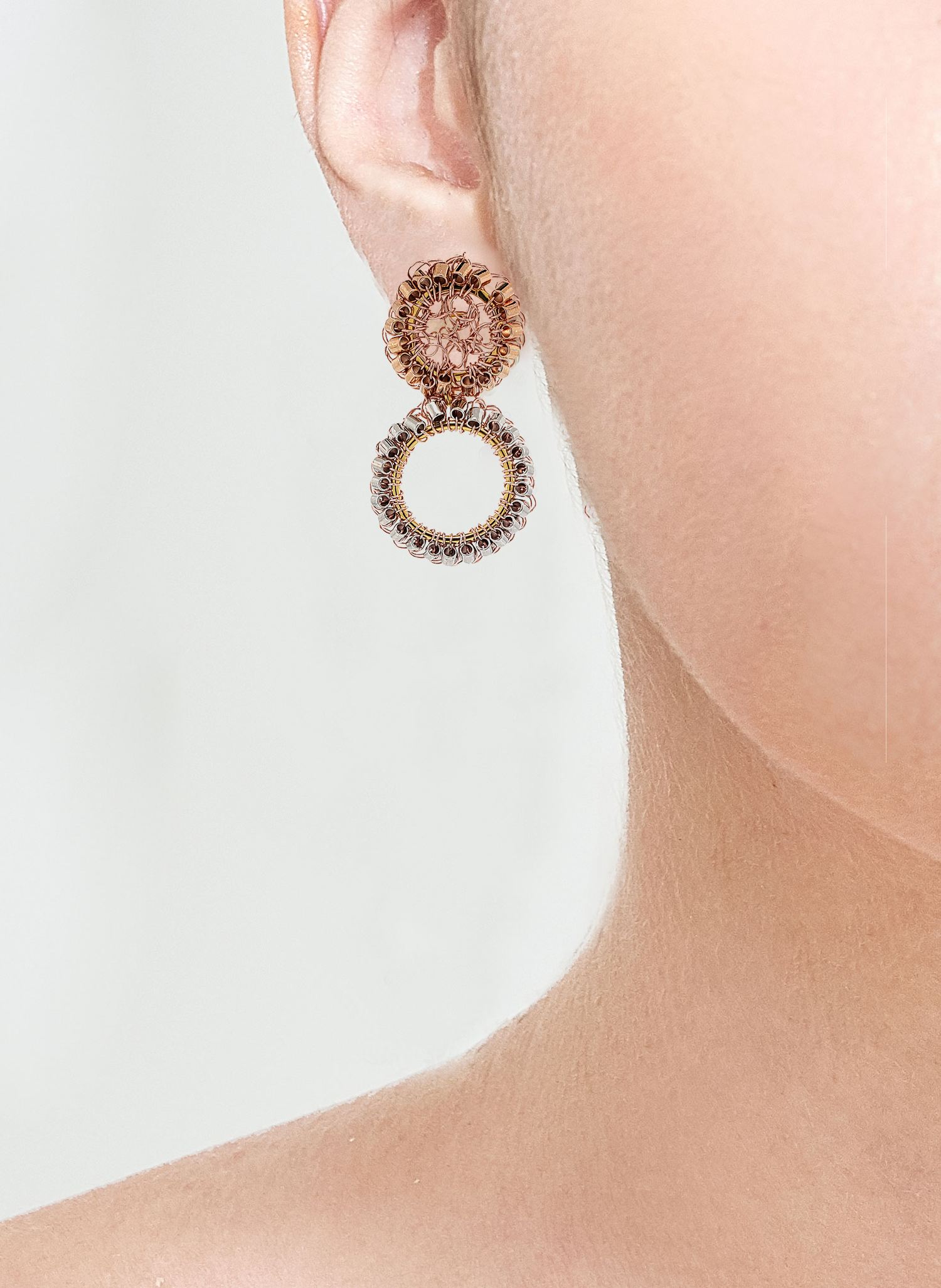 Brincos tecidos com a técnica do crochê por artesãs brasileiras altamente qualificadas. Confeccionado com fio de cobre esmaltado. É uma joia leve e confortável. Fabricado com materiais hipoalergênicos e sem níquel. Esse brinco é tecido individualmente e carrega a impressão digital da artesã que o teceu, tornando sua joia única e deslumbrantes que durarão por toda a vida.