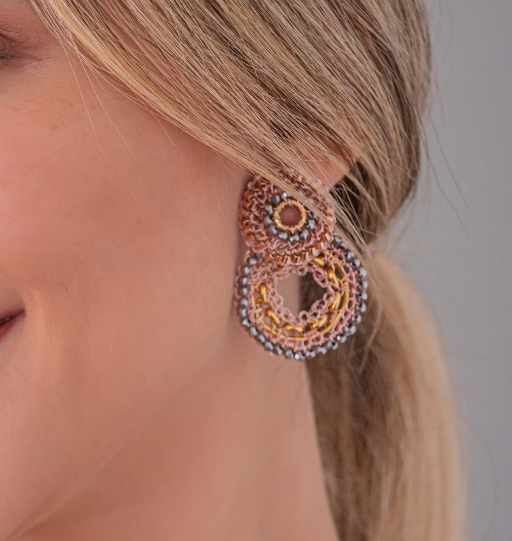Brinco de Crochê Círculo Duplo Correntes do Amor Entrelaçados Trio Gold