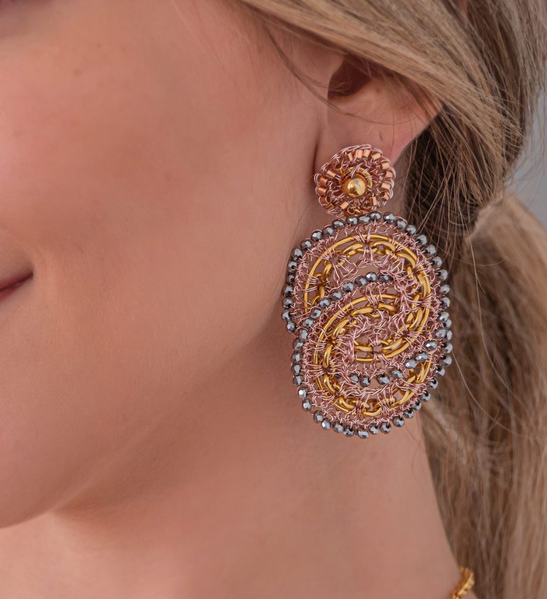 Anel tecido com a técnica do crochê por artesãs brasileiras altamente qualificadas. Confeccionado com fio de cobre esmaltado. É uma joia leve e confortável. Fabricado com materiais hipoalergênicos e sem níquel. Esse anel é tecido individualmente e carrega a impressão digital da artesã que o teceu, tornando sua joia única e deslumbrantes que durarão por toda a vida. Brinco de Crochê Círculos Correntes do Amor Entrelaçados Trio Gold possui: