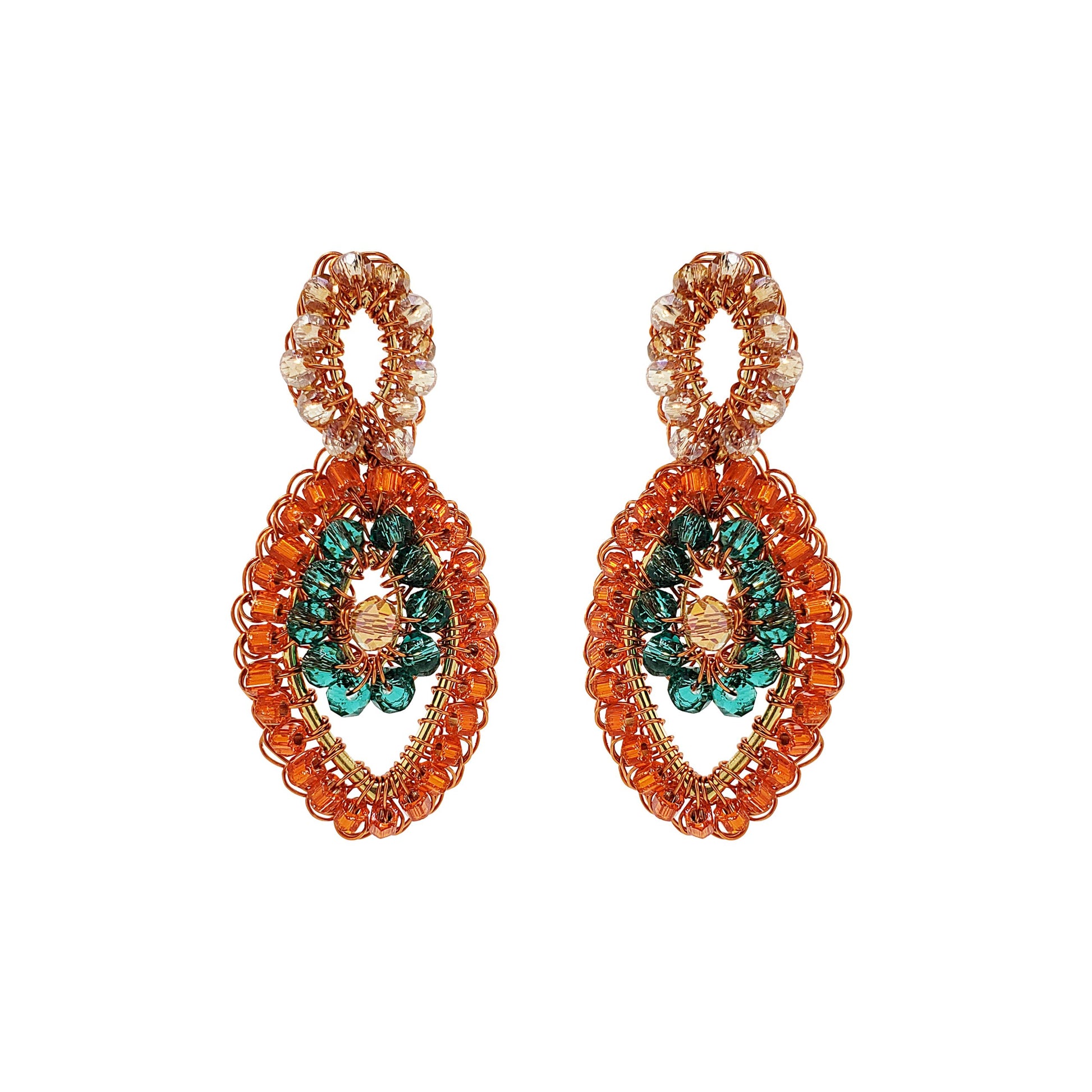 Brincos tecidos com a técnica do crochê por artesãs brasileiras altamente qualificadas. Confeccionado com fio de cobre esmaltado. É uma joia leve e confortável. Fabricado com materiais hipoalergênicos e sem níquel. Esse brinco é tecido individualmente e carrega a impressão digital da artesã que o teceu, tornando sua joia única e deslumbrantes que durarão por toda a vida.