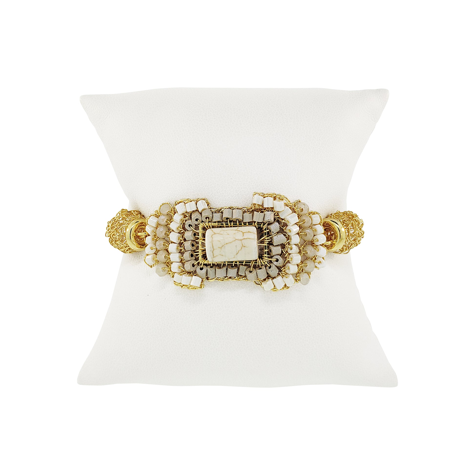 Bracelete tecido com a técnica do crochê por artesãs brasileiras altamente qualificadas. Confeccionado com fio de cobre banhado em ouro 18 quilates. É uma joia leve e confortável. Fabricado com materiais hipoalergênicos e sem níquel. Esse brinco é tecido individualmente e carrega a impressão digital da artesã que o teceu, tornando sua joia única e deslumbrantes que durarão por toda a vida.
