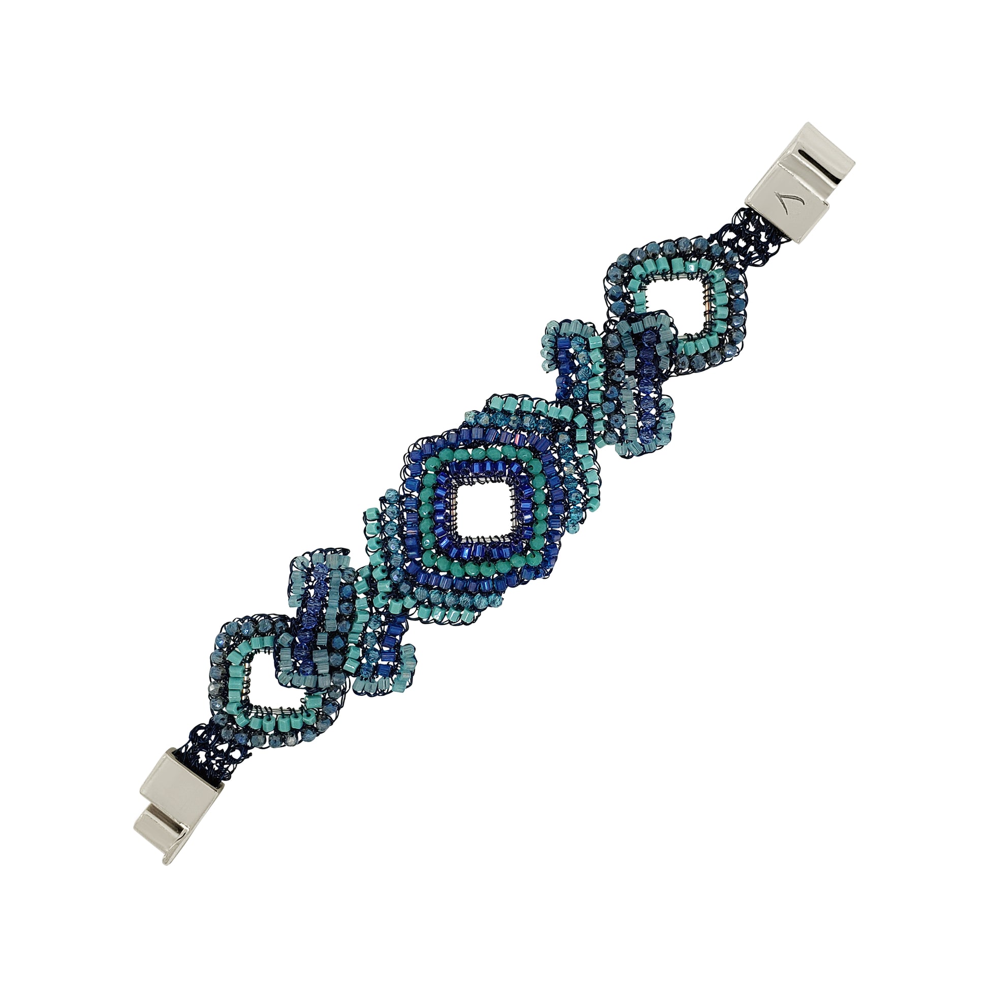 Bracelete de Crochê Puzzle Maxi Azul Sale