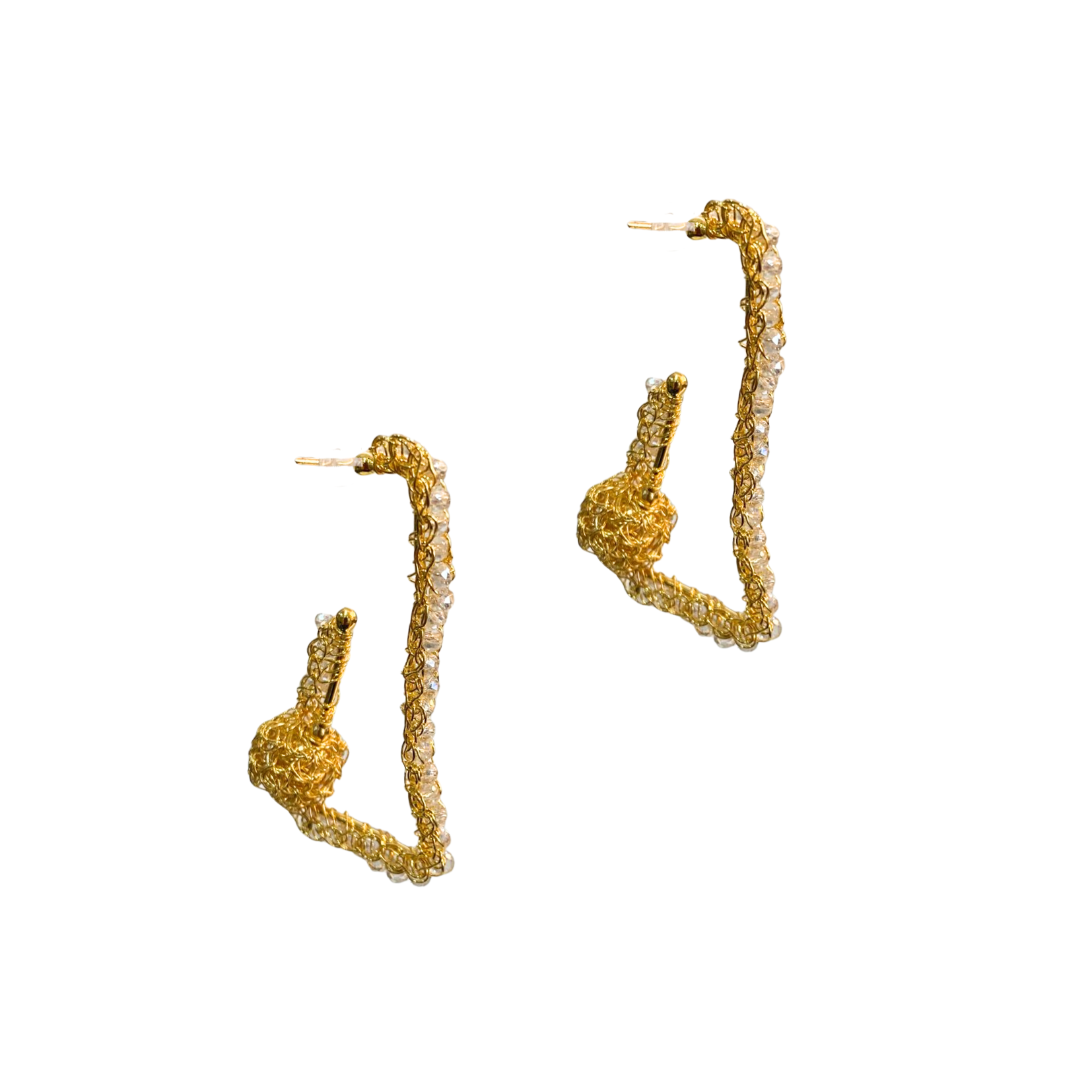 Brincos tecidos com a técnica do crochê por artesãs brasileiras altamente qualificadas. Confeccionado com fio de cobre Banhado a ouro 18k. É uma joia leve e confortável. Fabricado com materiais hipoalergênicos e sem níquel. Esse brinco é tecido individualmente e carrega a impressão digital da artesã que o teceu, tornando sua joia única e deslumbrantes que durarão por toda a vida.