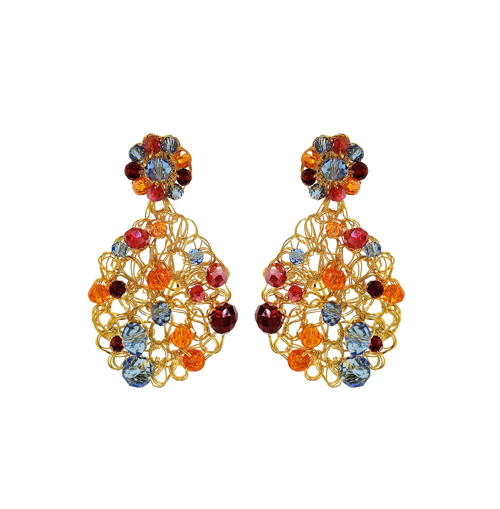 Brincos tecidos com a técnica do crochê por artesãs brasileiras altamente qualificadas. Confeccionado com fio de cobre banhado em ouro 18 quilates. É uma joia leve e confortável. Fabricado com materiais hipoalergênicos e sem níquel. Esse brinco é tecido individualmente e carrega a impressão digital da artesã que o teceu, tornando sua joia única e deslumbrantes que durarão por toda a vida.