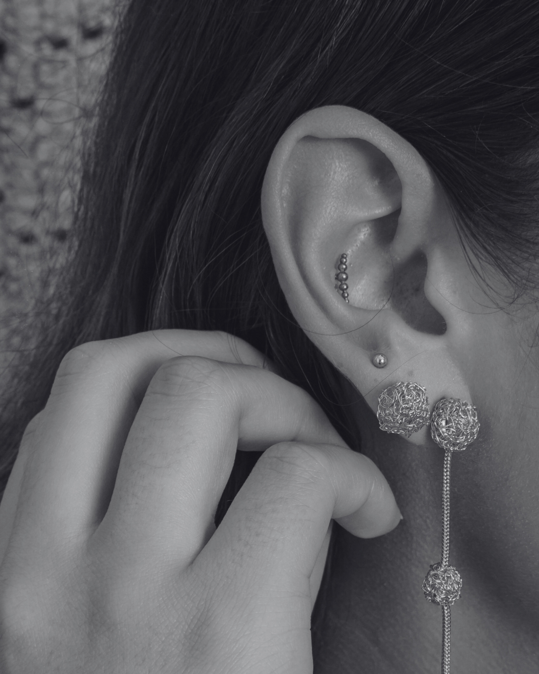Brincos tecidos com a técnica do crochê por artesãs brasileiras altamente qualificadas. Confeccionado com fio de cobre banhado. É uma joia leve e confortável. Fabricado com materiais hipoalergênicos e sem níquel. Esse brinco é tecido individualmente e carrega a impressão digital da artesã que o teceu, tornando sua joia única e deslumbrantes que durarão por toda a vida.