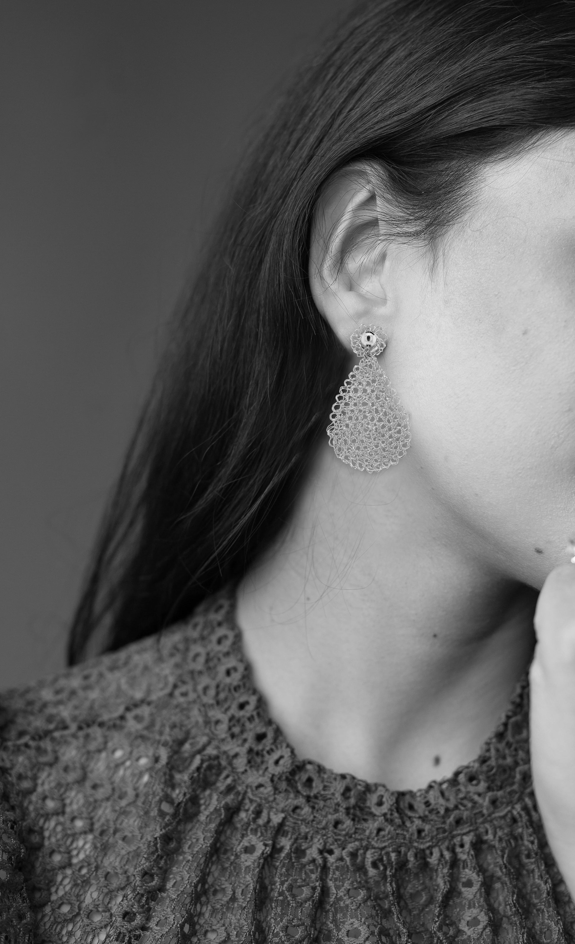 Brincos tecidos com a técnica do crochê por artesãs brasileiras altamente qualificadas. Confeccionado com fio de cobre banhado. É uma joia leve e confortável. Fabricado com materiais hipoalergênicos e sem níquel. Esse brinco é tecido individualmente e carrega a impressão digital da artesã que o teceu, tornando sua joia única e deslumbrantes que durarão por toda a vida.