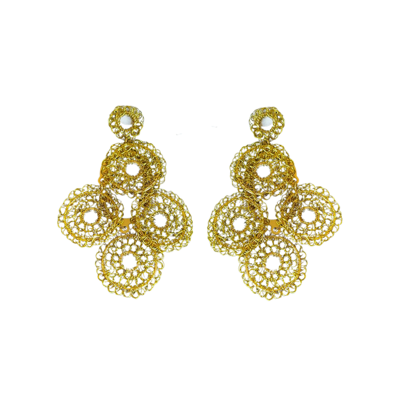 Brincos tecidos com a técnica do crochê por artesãs brasileiras altamente qualificadas. Confeccionado com fio de cobre esmaltado. É uma joia leve e confortável. Fabricado com materiais hipoalergênicos e sem níquel. Esse brinco é tecido individualmente e carrega a impressão digital da artesã que o teceu, tornando sua joia única e deslumbrantes que durarão por toda a vida.