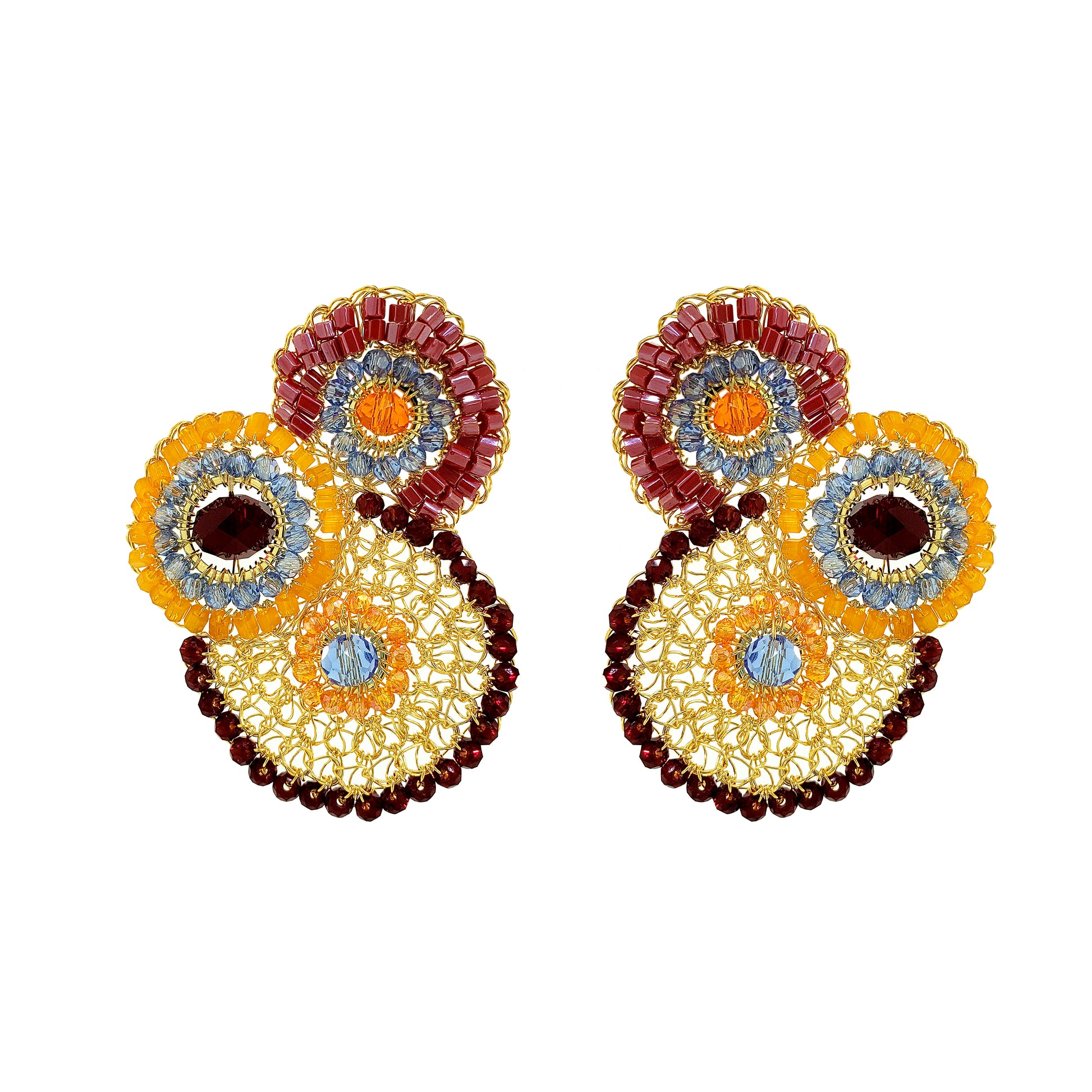 Brincos tecidos com a técnica do crochê por artesãs brasileiras altamente qualificadas. Confeccionado com fio de cobre banhado em ouro 18 quilates. É uma joia leve e confortável. Fabricado com materiais hipoalergênicos e sem níquel. Esse brinco é tecido individualmente e carrega a impressão digital da artesã que o teceu, tornando sua joia única e deslumbrantes que durarão por toda a vida.