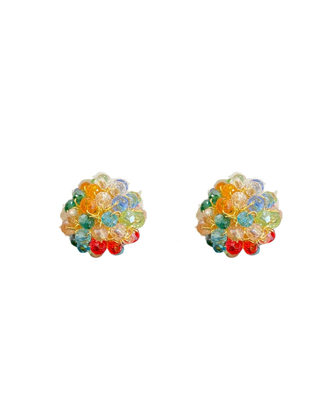 Brinco de Crochê Pequeno Bola Cristal Colorido