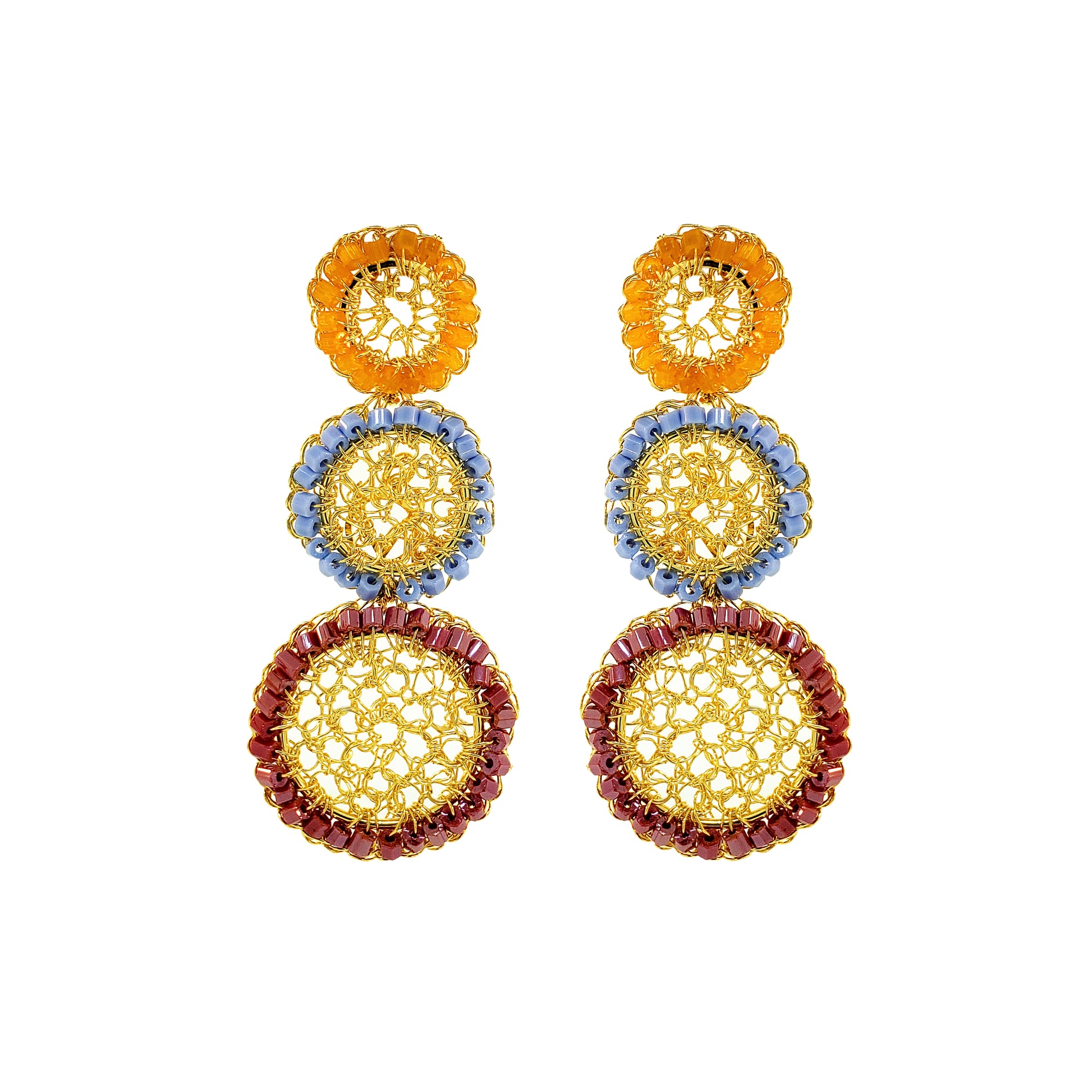 Brincos tecidos com a técnica do crochê por artesãs brasileiras altamente qualificadas. Confeccionado com fio de cobre banhado em ouro 18 quilates. É uma joia leve e confortável. Fabricado com materiais hipoalergênicos e sem níquel. Esse brinco é tecido individualmente e carrega a impressão digital da artesã que o teceu, tornando sua joia única e deslumbrantes que durarão por toda a vida.