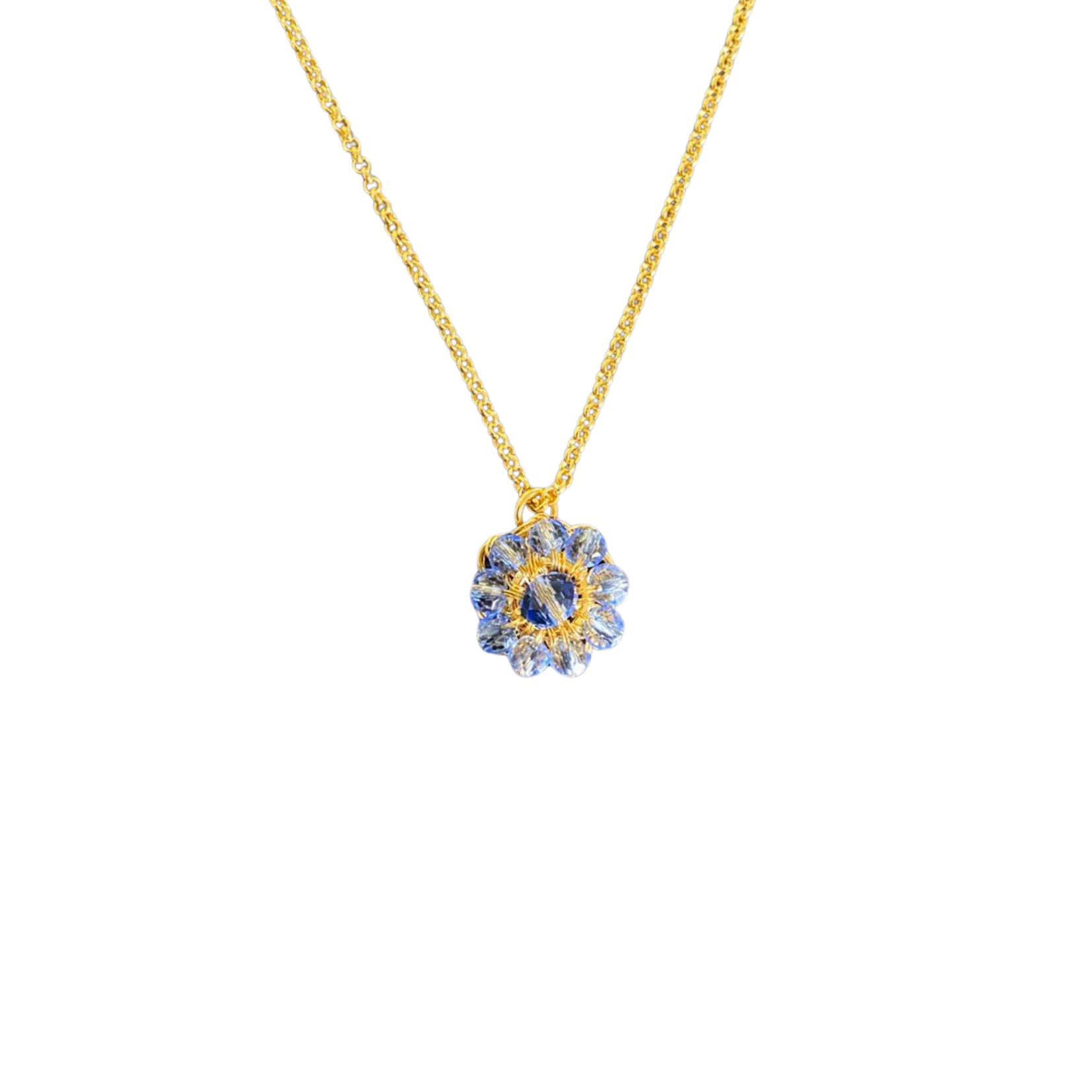 Colar de Crochê Flor Mini Cristal Azul Sale